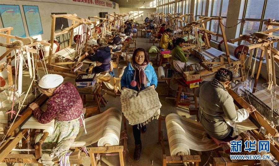 12月25日,在衡水市冀州區(qū)一家老粗布生產(chǎn)企業(yè),工人在織布。 2018年以來(lái),河北省衡水市冀州區(qū)依托當(dāng)?shù)氐氖〖?jí)非遺田園棉手織粗布技藝資源,采取“非遺+扶貧”的模式,通過(guò)非遺傳承人開(kāi)展技能培訓(xùn)、老師傅傳幫帶等,讓貧困村民在傳承非遺文化的同時(shí)學(xué)習(xí)傳統(tǒng)技藝,助力脫貧致富。 新華社記者 李曉果 攝