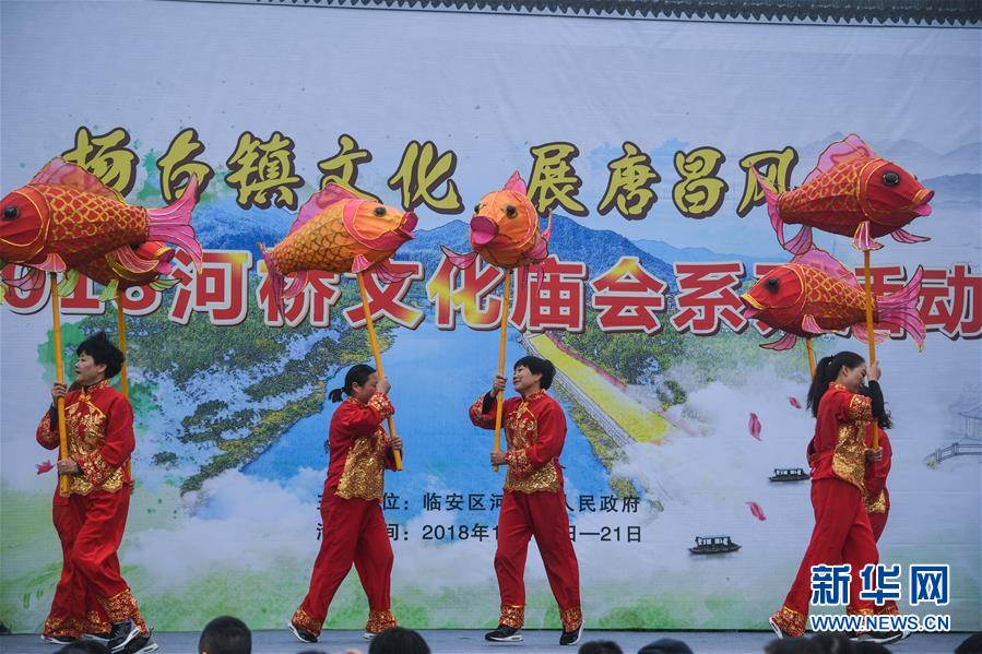 當日,浙江省杭州市臨安區(qū)河橋鎮(zhèn)舉辦一場集傳統(tǒng)文化展示、民俗表演、美食品鑒等于一體的傳統(tǒng)廟會,吸引了眾多游客和當?shù)鼐用袂皝砀惺軣狒[氣氛。