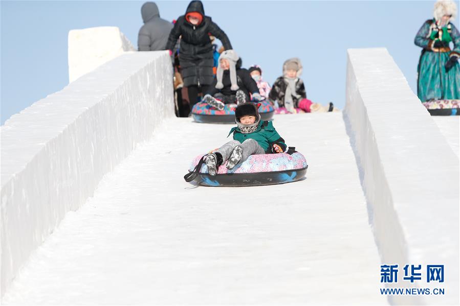 12月26日,小朋友在玩雪滑梯。 當日,內(nèi)蒙古冰雪那達慕系列活動在呼倫貝爾市鄂溫克旗繼續(xù)進行,牧民歡聚一堂,參加各種賽事和趣味項目。 新華社記者 虞東升 攝