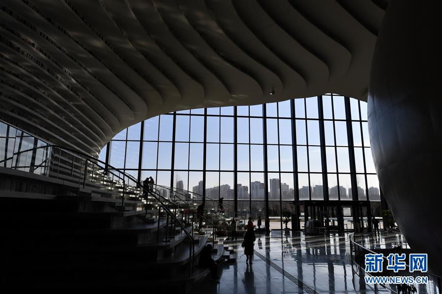 這是12月27日拍攝的天津?yàn)I海新區(qū)圖書館中庭。 濱海新區(qū)圖書館位于天津?yàn)I海文化中心,2017年10月1日正式開(kāi)館,設(shè)計(jì)立意為“濱海之眼”和“書山有路勤為徑”。圖書館現(xiàn)有藏書60多萬(wàn)冊(cè),一年多來(lái)接待讀者約280萬(wàn)人次,已成為濱海新區(qū)的文化“新地標(biāo)”。 新華社記者李然攝