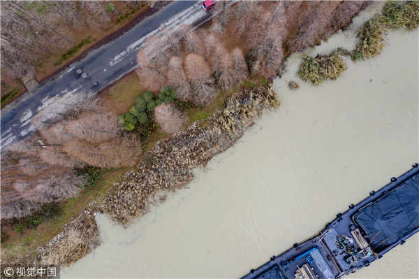 航拍京杭古運(yùn)河冬景