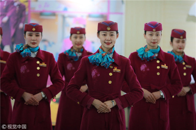 2018年12月27日,四川成都,為備戰(zhàn)即將開通的成雅鐵路,中國鐵路成都局集團(tuán)有限公司成都客運(yùn)段動(dòng)車二隊(duì)對(duì)成雅動(dòng)車的乘務(wù)人員進(jìn)行理論、形體、服務(wù)禮儀等內(nèi)容的培訓(xùn)。
