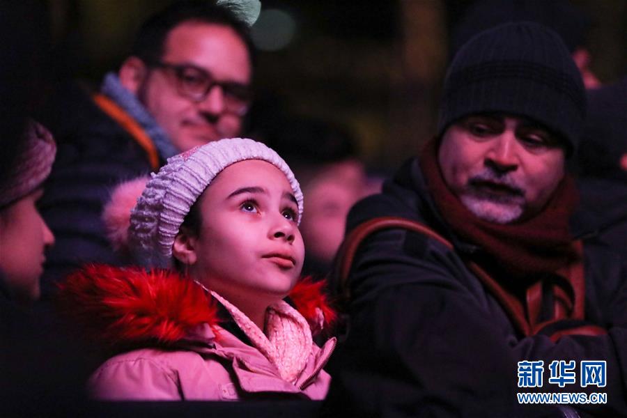 2018年12月31日,在意大利羅馬,一名女孩在跨年活動上觀看燈光秀。 新華社記者程婷婷攝