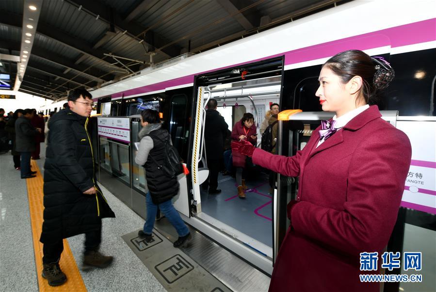 2019年1月1日,工作人員在濟(jì)南軌道交通1號(hào)線創(chuàng)新谷站引導(dǎo)乘客。