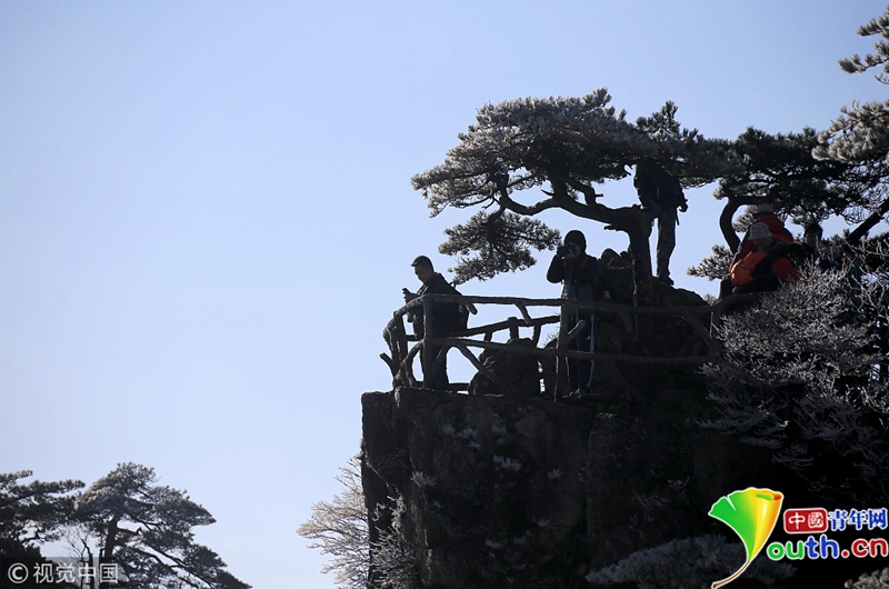 4月15日,安徽黃山出現(xiàn)了四月陽(yáng)春罕見的霧凇奇觀。圖片作者:施廣德/視覺中國(guó)