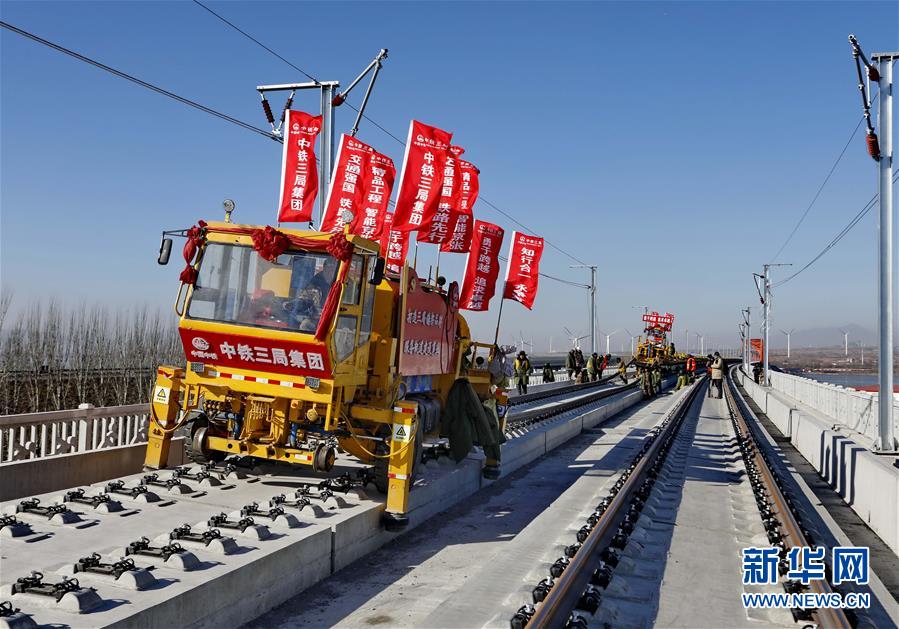 當(dāng)日,京張高鐵官廳水庫特大橋鋪軌工作完成。京張高鐵全長174公里,是2022年北京冬奧會(huì)的重要交通保障線。