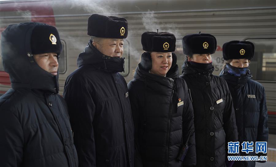 1月11日,在滿洲里火車站站臺(tái),由于氣溫近零下30攝氏度,“金鑰匙”服務(wù)臺(tái)客運(yùn)員“呵氣成霧”。