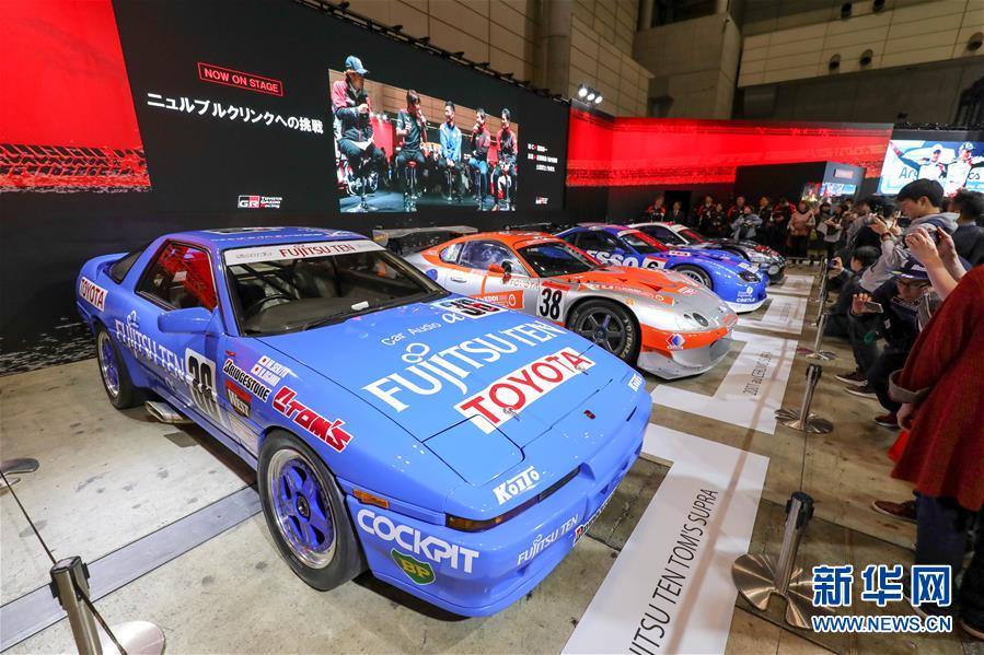 1月13日,在日本千葉東京汽車(chē)沙龍現(xiàn)場(chǎng),豐田公司展出的歷代賽車(chē)吸引大批觀(guān)眾。 新華社記者 馬曹冉 攝