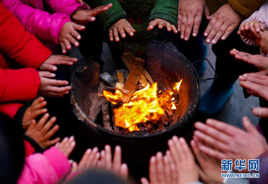 1月3日,章站亮和學(xué)生們一起圍著點燃的火爐取暖。 新華社記者 胡晨歡 攝