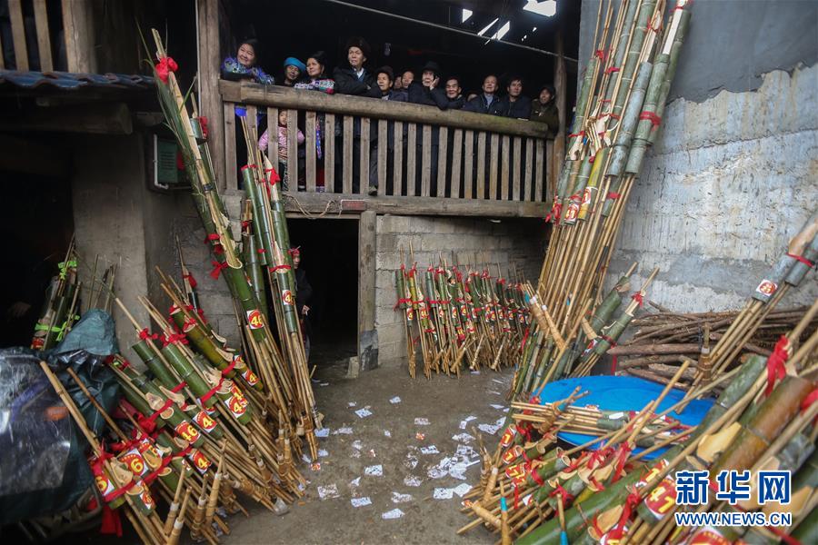 1月14日,人們在廣西融水苗族自治縣紅水鄉(xiāng)觀看蘆笙吹奏比賽。新華社記者 陳君清 攝