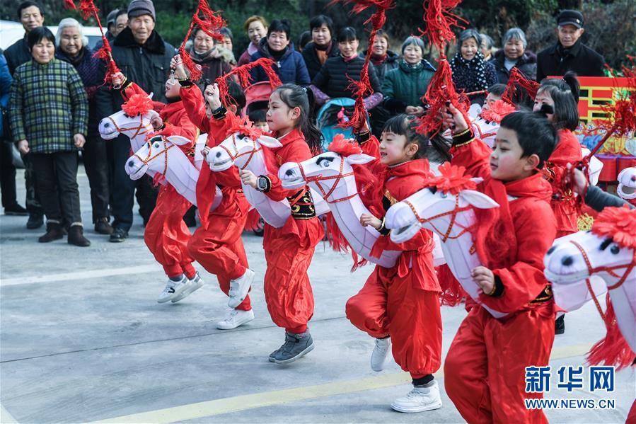 1月16日,孩子們?yōu)樾绿链宕迕癖硌輦鹘y(tǒng)非遺項目——下箬馬燈。下箬馬燈是發(fā)源于長興縣的民間舞蹈,距今已有1000多年歷史。 臨近春節(jié),浙江省長興縣開發(fā)區(qū)中心幼兒園的老師和孩子們來到長興縣太湖街道下屬的新塘村,為村民表演文藝節(jié)目,用喜慶的傳統(tǒng)舞蹈營造節(jié)日氣氛。另外孩子們還用紙盒、瓶子、彩色包裝紙等廢舊物品制作了環(huán)保花燈,送給村民,倡導低碳環(huán)保的節(jié)日新風。 新華社記者 徐昱 攝