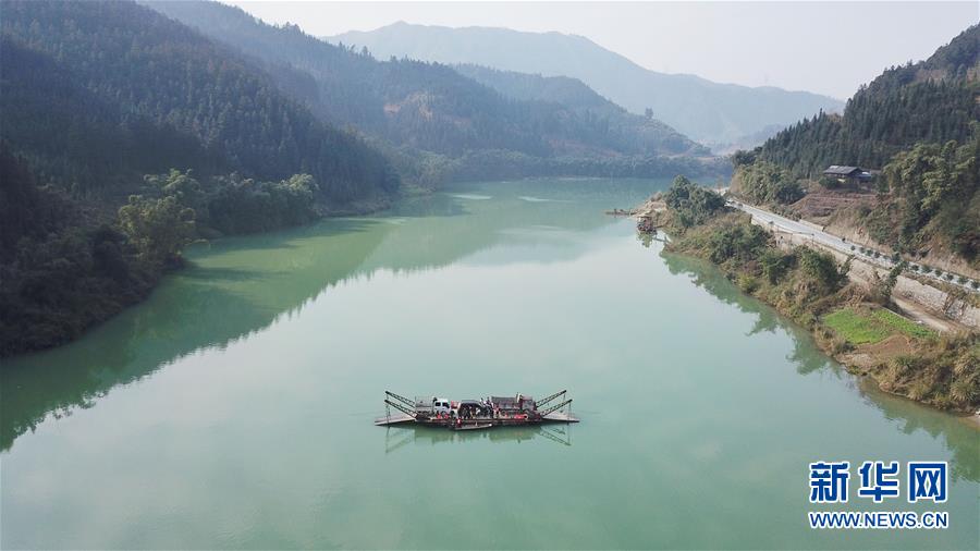 1月22日,渡輪在都柳江上行進(jìn)(無人機(jī)航拍)。 新華社記者 歐東衢 攝