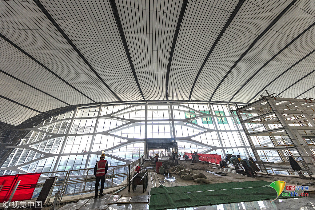 2018年12月19日,北京大興國際機場航站樓的室內(nèi)裝修場景。視覺中國