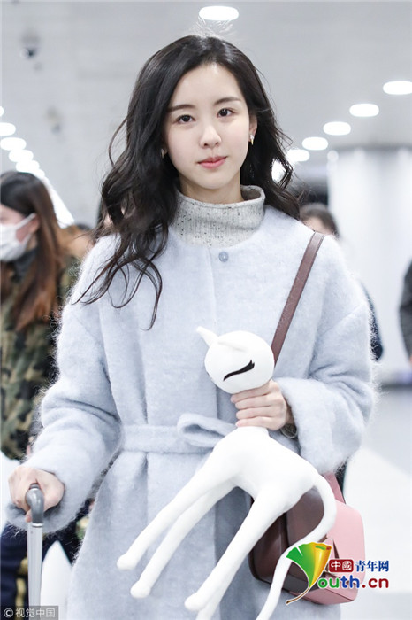 2019年1月27日,北京,陳都靈現(xiàn)身機場。手里拿著可愛白色公仔的她深夜現(xiàn)身機場,皮膚狀態(tài)仍非常好,羨煞旁人。