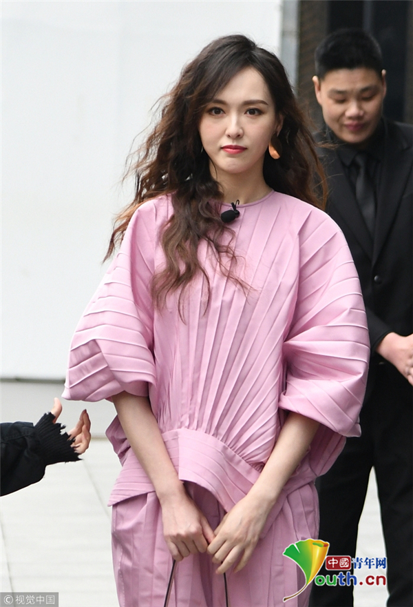 唐嫣隔玻璃比心與粉絲互動 路人視角也美到窒息
