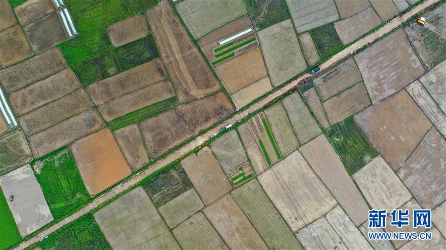 這是欽州市欽南區(qū)康熙嶺鎮(zhèn)板坪村的稻田(3月20日無人機(jī)拍攝)。春分將至,各地農(nóng)民搶抓農(nóng)時(shí)開展農(nóng)事活動(dòng),田間地頭到處是一派繁忙景象。 新華社記者張愛林?jǐn)z