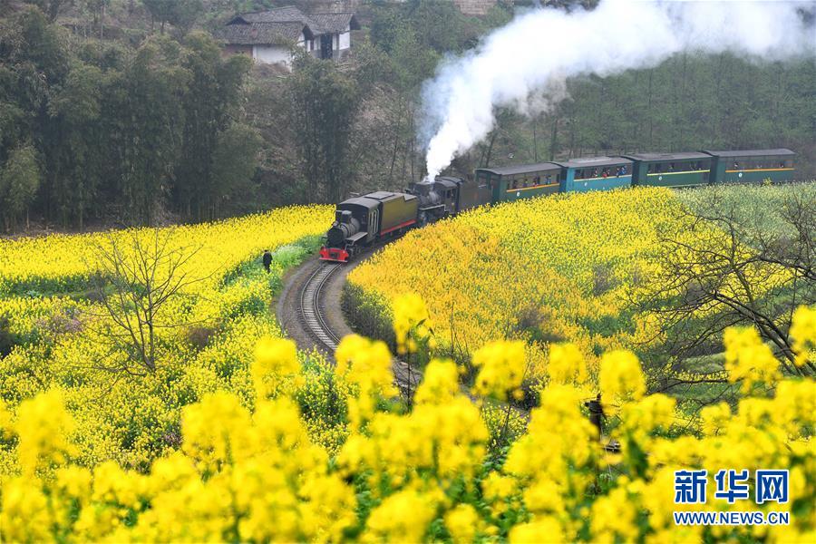 初春時(shí)節(jié),在花海中穿行的嘉陽(yáng)小火車迎來(lái)了每年的旅游旺季,眾多游客慕名前來(lái)乘坐。