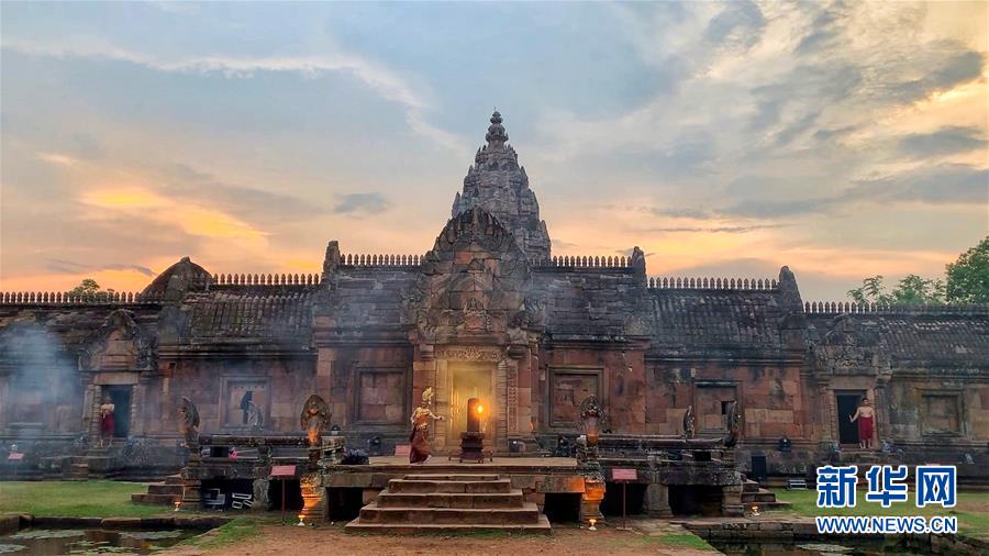 4月5日,在泰國武里南府,當(dāng)?shù)嘏源虬绯上膳臉幼釉谂羶z隆寺前跳舞。 一年一度的“登帕儂隆山節(jié)”在泰國東北部毗鄰柬埔寨的武里南府帕儂隆山舉辦。當(dāng)?shù)厝艘怨叛b巡游展示獨特的傳統(tǒng)文化,希望能吸引更多外國游客、促進(jìn)當(dāng)?shù)芈糜螛I(yè)發(fā)展。 新華社記者 楊舟 攝