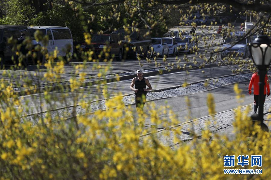 4月16日,一名男子在美國紐約中央公園跑步。 新華社記者 王迎 攝