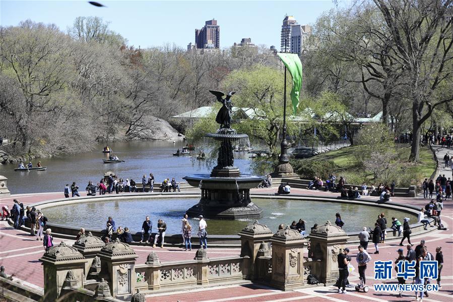 4月16日,人們在美國紐約中央公園游玩。 新華社記者 王迎 攝