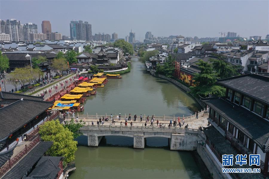 這是4月17日無人機(jī)拍攝的南京夫子廟景區(qū)。 新華社記者 李博 攝