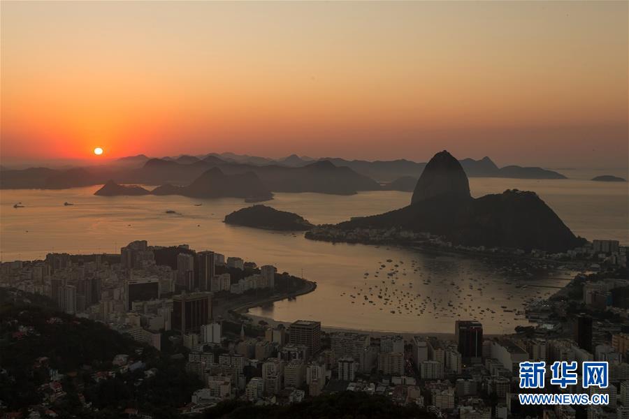這是2015年8月7日在巴西里約熱內盧拍攝的日出時分的瓜納巴拉灣和面包山。 新華社記者徐子鑒攝