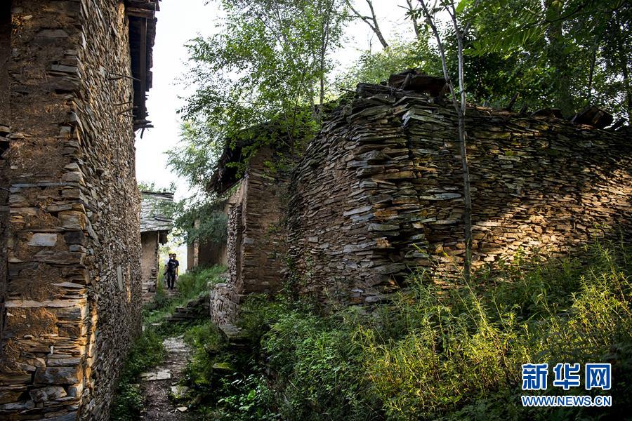 為數(shù)不多的游人在石板房之間探訪(8月7日攝)。 新華社記者陶明攝