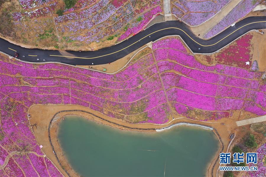 4月24日無(wú)人機(jī)拍攝的雨花谷景區(qū)。近日,河北省遷西縣雨花谷景區(qū)的芝櫻花盛開(kāi),吸引游客前來(lái)觀賞。 新華社記者 楊世堯 攝