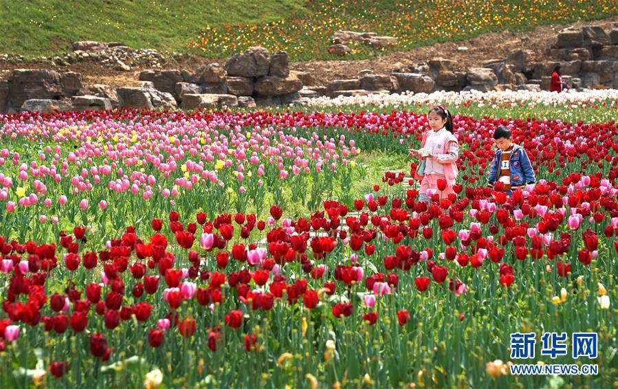 4月14日,游客在位于湖北省十堰市茅箭區(qū)的秦巴生態(tài)植物園內(nèi)游玩。近日,位于湖北省十堰市茅箭區(qū)的秦巴生態(tài)植物園內(nèi),200萬(wàn)株郁金香競(jìng)相開(kāi)放,吸引游客前來(lái)賞花游覽。 新華社記者 程敏 攝
