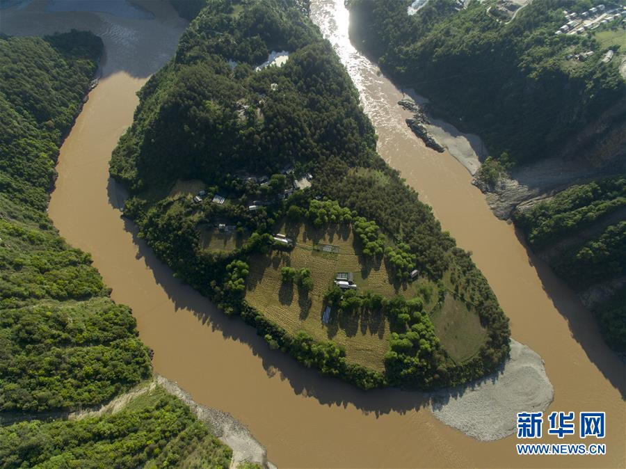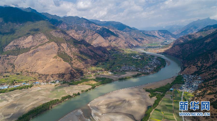 這是無人機拍攝的“長江第一灣”一景(3月17日攝)?!伴L江第一灣”位于云南省麗江市玉龍納西族自治縣石鼓鎮(zhèn),萬里長江從青藏高原奔騰而下,與瀾滄江、怒江一起在橫斷山脈的高山深谷中穿行形成并流的壯麗景觀。金沙江在麗江石鼓鎮(zhèn)突然以急轉(zhuǎn)彎轉(zhuǎn)向東北,形成一個宛若“V”字形的大轉(zhuǎn)彎,得名“長江第一灣”。春日里,“長江第一灣”江水青碧,美景迷人。 新華社記者胡超攝