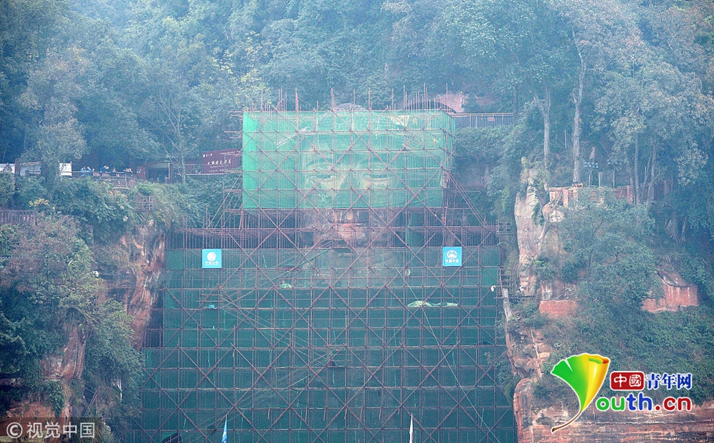 樂山大佛本體已全遮蔽 胸腹開裂病害原因基本查明