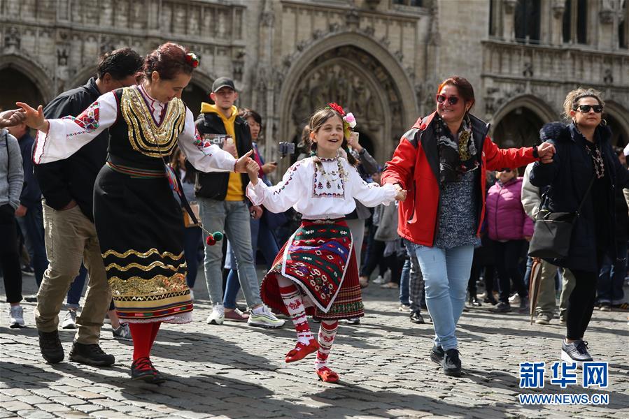 4月28日,在比利時(shí)布魯塞爾大廣場(chǎng),表演者與游客一同跳舞。 當(dāng)日,來自歐洲多個(gè)國(guó)家的表演者在比利時(shí)布魯塞爾大廣場(chǎng)載歌載舞,慶祝為期五天的2019年巴爾干文化藝術(shù)節(jié)圓滿落幕。該文化藝術(shù)節(jié)旨在用音樂、舞蹈、文學(xué)、街頭藝術(shù)等方式向公眾展現(xiàn)東南歐巴爾干半島地區(qū)的民族文化風(fēng)情。 新華社記者鄭煥松攝