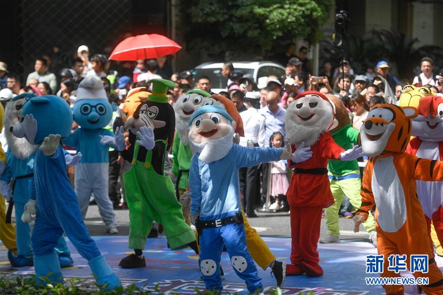 5月4日,演員裝扮成各種動漫形象在巡游隊伍中表演。當日,第十五屆中國國際動漫節(jié)彩車巡游活動在浙江杭州南宋御街中北創(chuàng)意街區(qū)舉行。巡游表演隊伍約500米長,由4輛大型動漫彩車、1輛小火車及400多名演員組成。新華社記者 黃宗治 攝