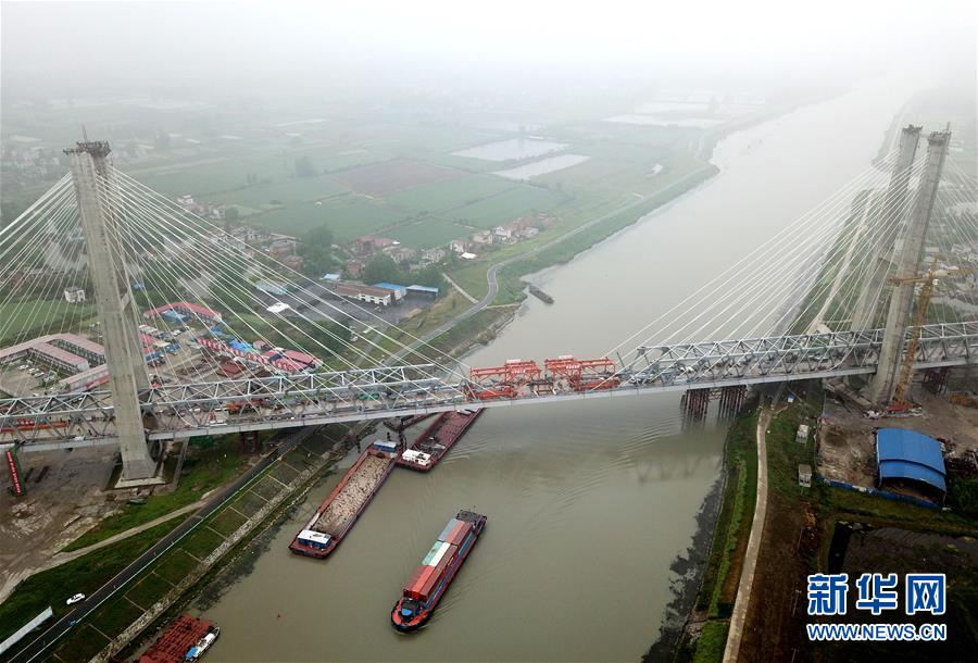 這是合龍后的商合杭鐵路裕溪河特大橋(4月22日無(wú)人機(jī)拍攝)。新華社記者劉軍喜攝