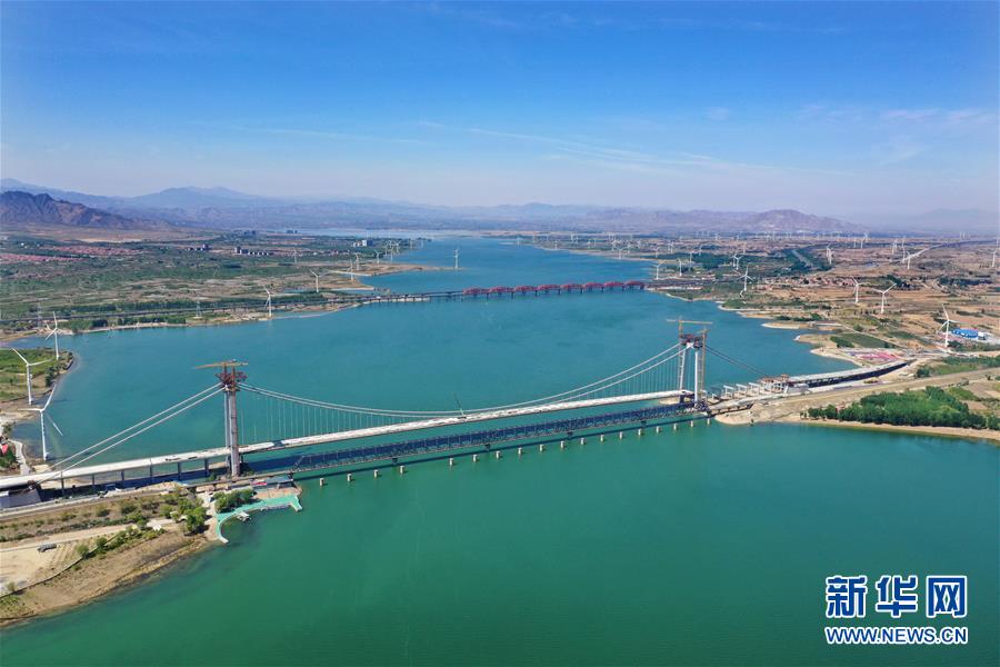 建設(shè)中的官?gòu)d水庫(kù)公路大橋(5月7日無(wú)人機(jī)拍攝)。 河北省懷來(lái)縣官?gòu)d水庫(kù)公路大橋是懷來(lái)沙城至東花園公路的節(jié)點(diǎn)工程,預(yù)計(jì)該橋?qū)⒂?019年6月竣工。 新華社記者 楊世堯 攝