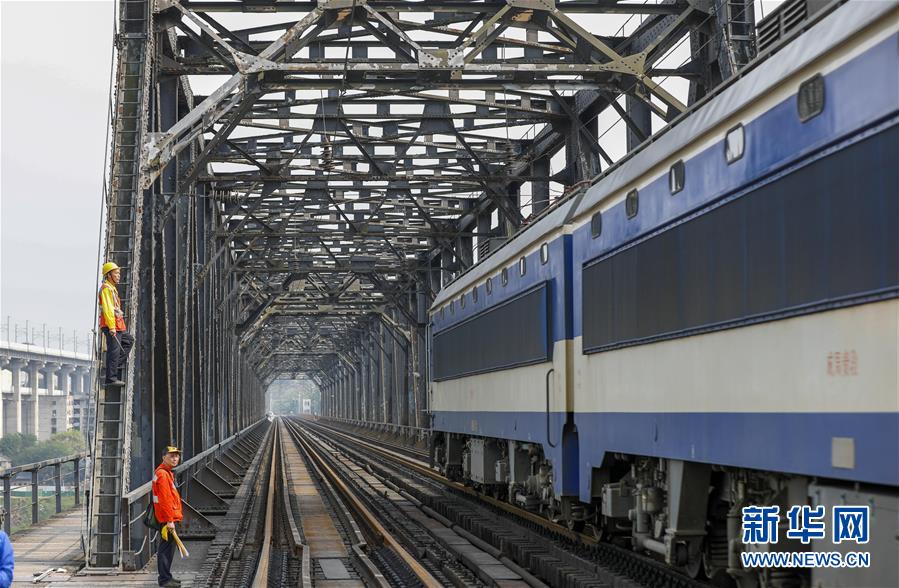 中國鐵路成都局有限公司重慶工務(wù)段的巡檢班組在白沙沱長江大橋上等待機(jī)車通過后繼續(xù)作業(yè)(4月23日攝)。 4月23日下午5點(diǎn)40分,隨著重慶白沙沱長江大橋通行的最后一列客運(yùn)列車順利通過,這座“服役”了59年的重慶首座長江大橋進(jìn)入“退役”倒計(jì)時(shí)。4月24日后,所有列車將改線經(jīng)距白沙沱長江大橋約100米的新白沙沱長江特大橋通行,新橋“接力”老橋,運(yùn)輸能力將得到大幅提升。 白沙沱長江大橋于1958年開工,1960年通過首趟列車,是繼武漢長江大橋之后的第二座長江大橋。 新華社記者 劉潺 攝