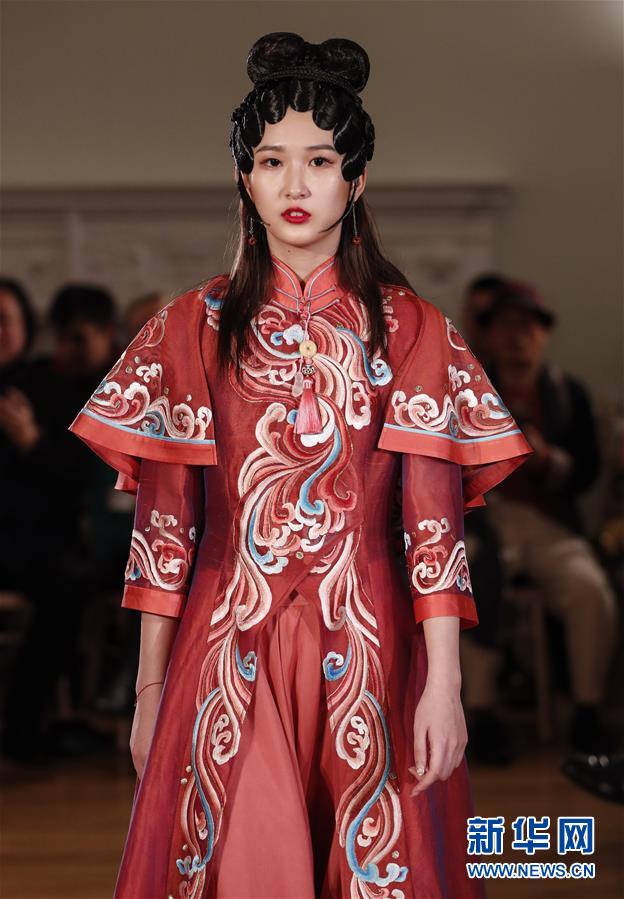 5月8日,一名模特在英國倫敦走秀。 由浙江省文化和旅游廳舉辦的浙江傳統(tǒng)工藝創(chuàng)新展8日在倫敦開幕。為期4天的展覽是第五屆倫敦手工藝周的重要活動之一。 新華社記者 韓巖 攝