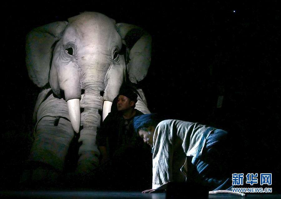 5月15日在上海美琪大戲院拍攝的新版大型人偶舞臺劇《最后一頭戰(zhàn)象》劇照。 當日,作為第12屆中國藝術節(jié)的參演劇目,大型人偶舞臺劇《最后一頭戰(zhàn)象》在經過4次硬件技術升級和故事修改后亮相上海美琪大戲院。 新華社記者 任瓏 攝