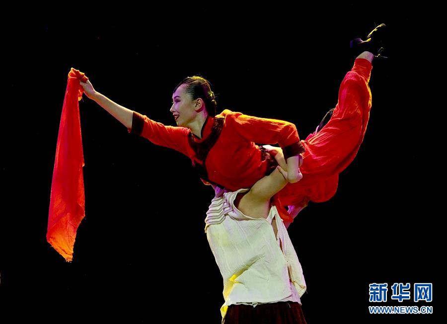 5月16日,在第十八屆群星獎決賽舞蹈類作品比賽中,演員在表演《雅卓沖諧》。 當日,作為第十二屆中國藝術(shù)節(jié)的重要內(nèi)容,第十八屆群星獎決賽在上海東方藝術(shù)中心啟動。84個入圍決賽作品將按照舞蹈、音樂、戲劇、曲藝4個門類進行7場比賽,最終評出20個獲獎作品。 新華社記者 任瓏 攝