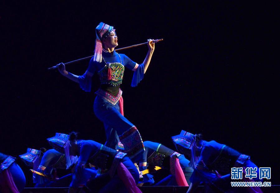 5月16日,在第十八屆群星獎決賽舞蹈類作品比賽中,演員在表演《苗家阿婆笑哈哈》。 當日,作為第十二屆中國藝術(shù)節(jié)的重要內(nèi)容,第十八屆群星獎決賽在上海東方藝術(shù)中心啟動。84個入圍決賽作品將按照舞蹈、音樂、戲劇、曲藝4個門類進行7場比賽,最終評出20個獲獎作品。 新華社記者 任瓏 攝
