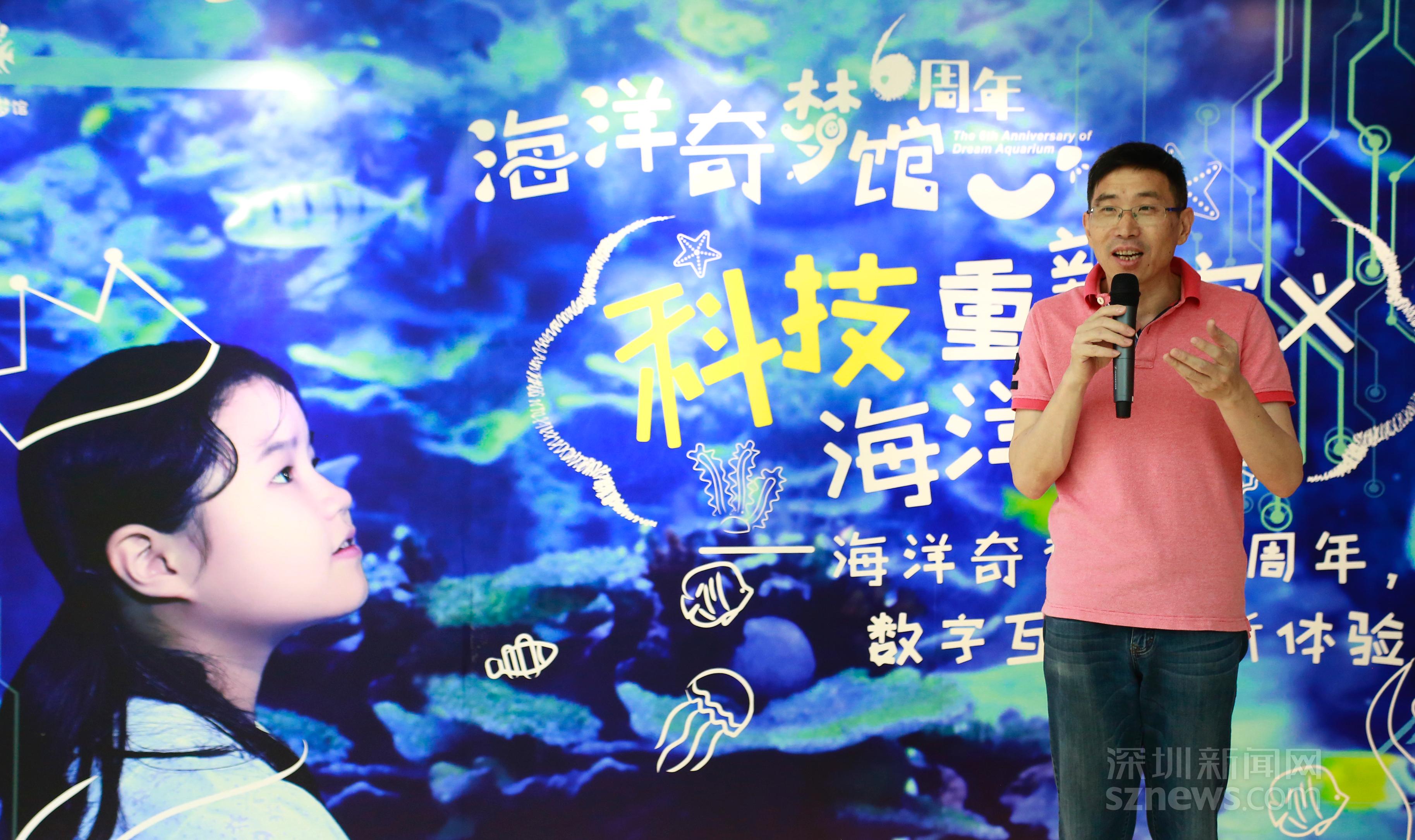 洪濤向記者介紹:“從2013年向公眾開放,海洋奇夢館就以令人驚嘆的‘科技范兒’占據(jù)深圳親子旅游行業(yè)的市場,隨著時代的發(fā)展,高科技手段將越來越真實的呈現(xiàn)出海洋的真實面貌?!焙闈呦蛘凇坝芜钡囊恢弧昂}敗?,向記者介紹,“海洋奇夢館要做的,不是為游客提供一個嬉笑玩樂的場所,我們希望讓公眾了解,真實的海洋世界與人類社會是需要互相尊重的。”