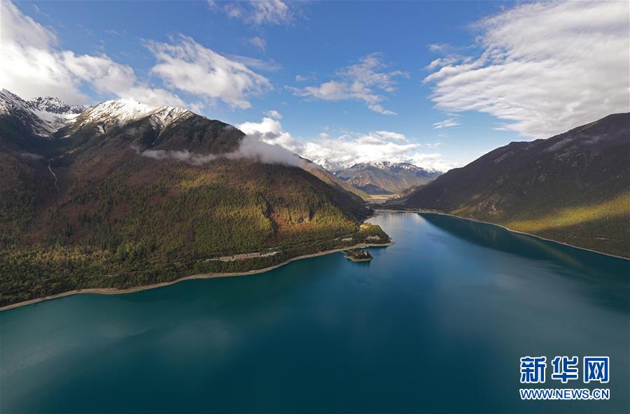 西藏林芝境內(nèi)的巴松湖(5月2日無(wú)人拍攝)。
