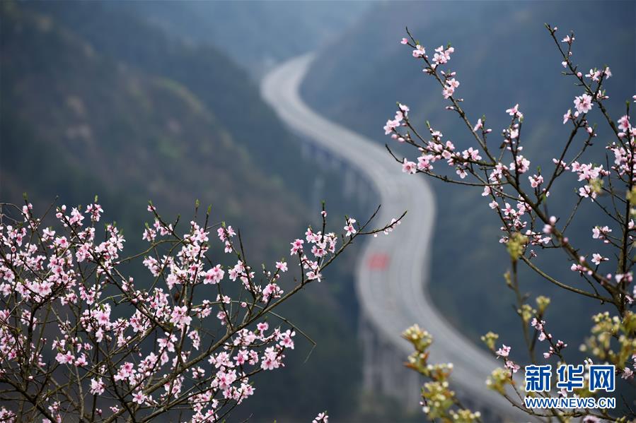 貴州思劍高速公路劍河縣岑松鎮(zhèn)段的春季景觀(3月23日攝)。陽春時節(jié),貴州思(南)劍(河)高速公路劍河縣岑松鎮(zhèn)附近的桃花和梨花陸續(xù)開放。 新華社記者楊文斌攝
