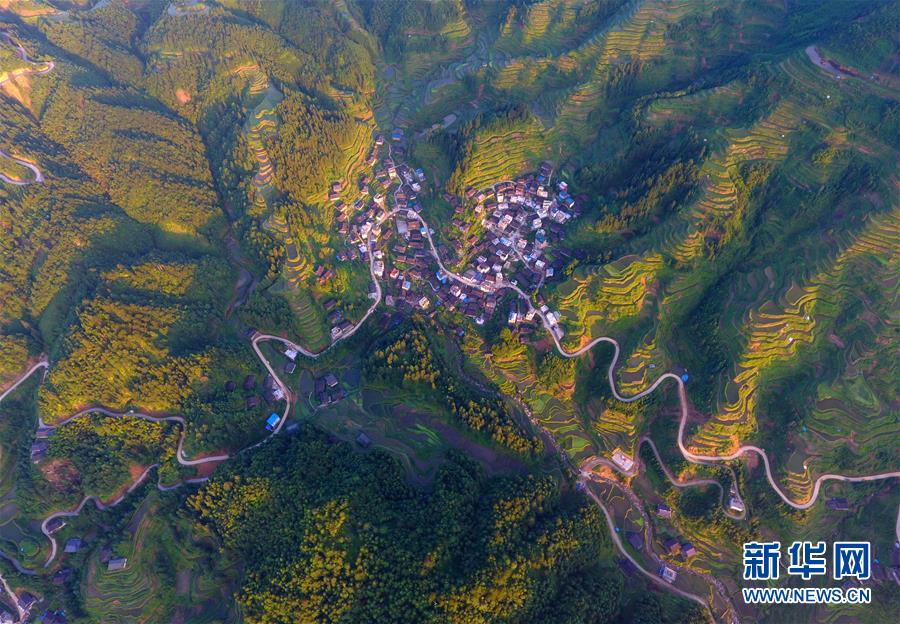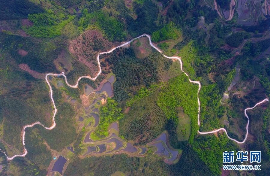 這是融水苗族自治縣桿洞鄉(xiāng)黨鳩村烏英苗寨的公路(4月18日無人機拍攝)。新華社記者 黃孝邦 攝