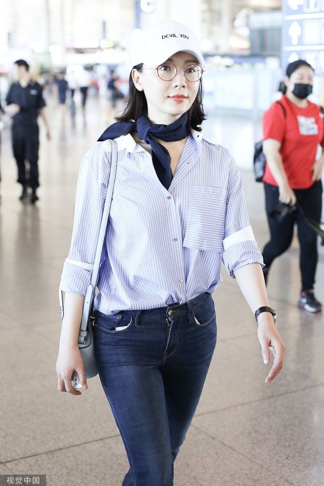 2019年6月30日,北京,陳數(shù)亮相機(jī)場(chǎng),她身穿條紋襯衫搭配藍(lán)色方巾完美詮釋知性美,簡(jiǎn)單造型非常耐看,已經(jīng)42歲的她皮膚也是亮白嫩滑,堪稱凍齡美人了。