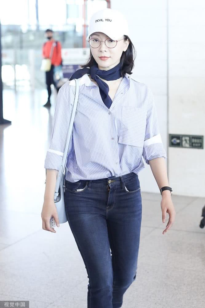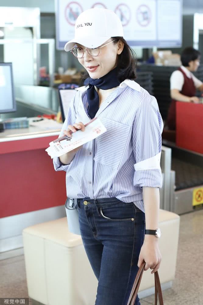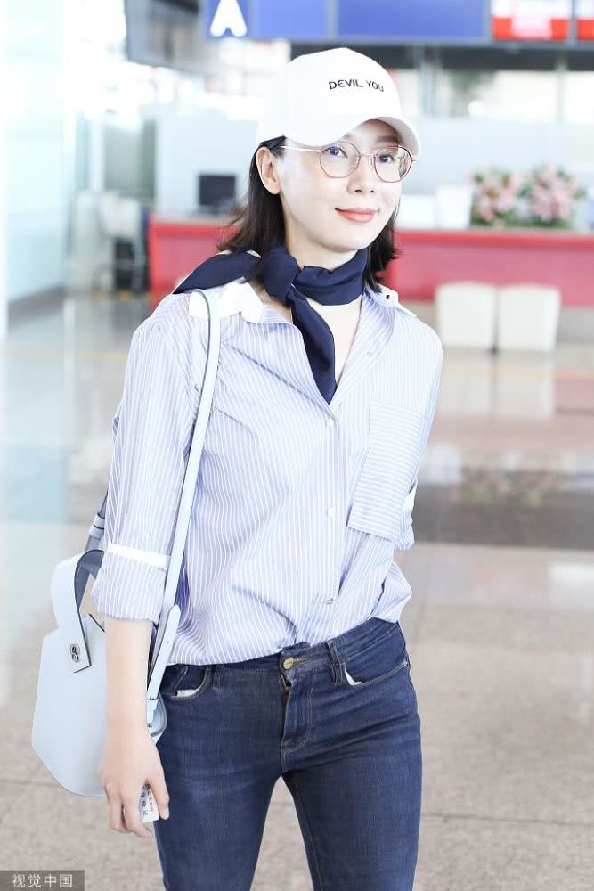 2019年6月30日,北京,陳數(shù)亮相機(jī)場(chǎng),她身穿條紋襯衫搭配藍(lán)色方巾完美詮釋知性美,簡(jiǎn)單造型非常耐看,已經(jīng)42歲的她皮膚也是亮白嫩滑,堪稱(chēng)凍齡美人了。