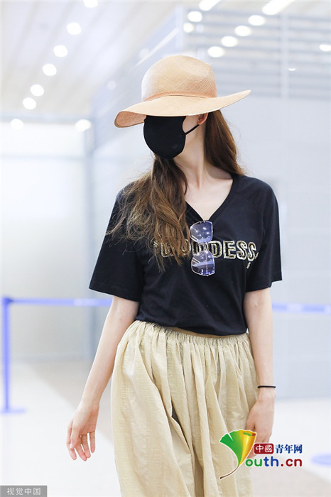2019年7月23日,上海,林志玲現(xiàn)身機場,穿著打扮與三天前在臺北機場相比毫無變化,依舊身穿黑體恤搭配米色休閑褲,墨鏡也依舊掛在胸前。