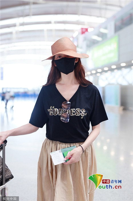 2019年7月23日,上海,林志玲現(xiàn)身機(jī)場,穿著打扮與三天前在臺北機(jī)場相比毫無變化,依舊身穿黑體恤搭配米色休閑褲,墨鏡也依舊掛在胸前。