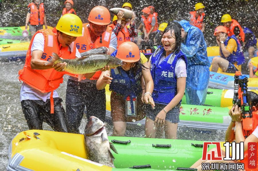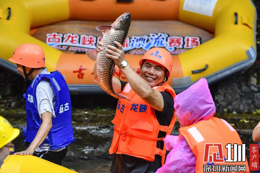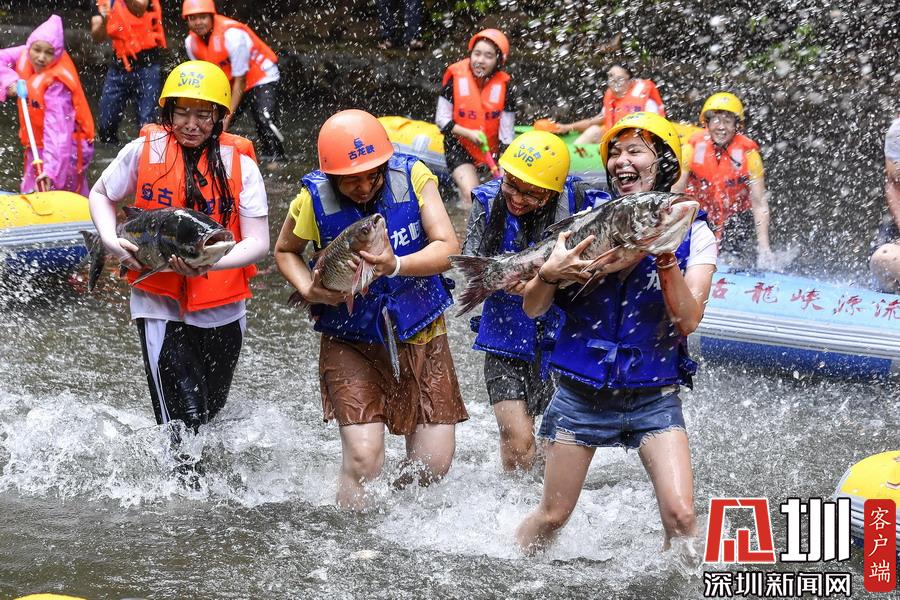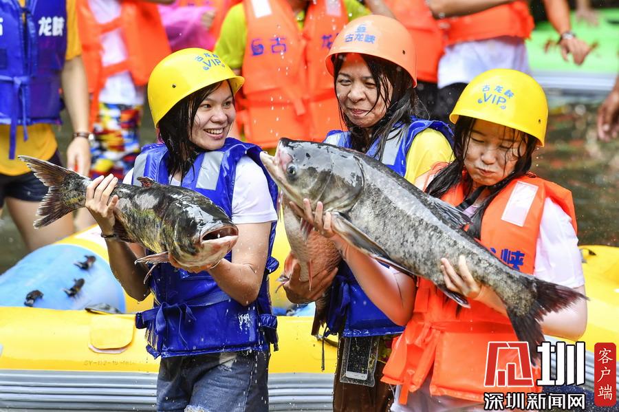 “韋帕”剛登陸廣東,清遠古龍峽漂流景區(qū)就開始泄洪,上萬斤水庫大魚隨著泄洪道“越獄”,引來上千名游客下艇捕魚,漂流河道上演了幾個小時的“人魚”大戰(zhàn),有的捕魚高手竟然捉了一漂流艇的魚回家。