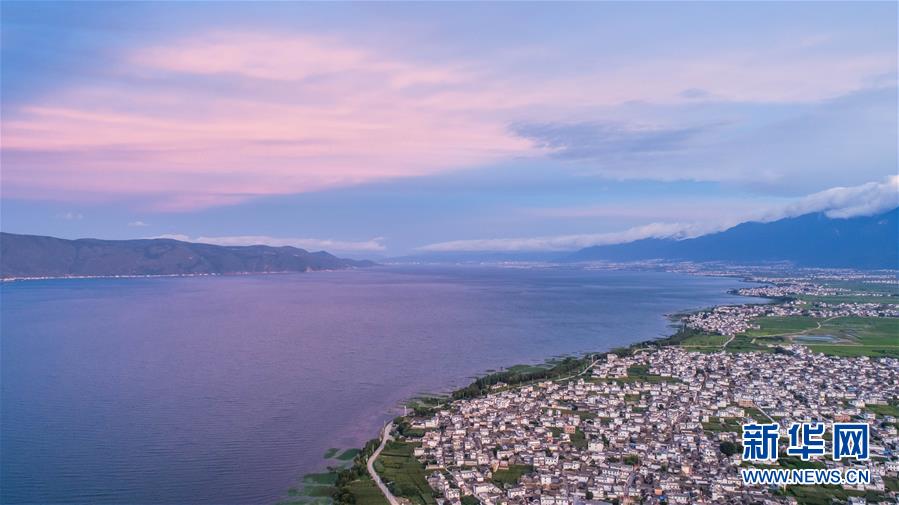云南大理洱海一景(2018年7月5日無人機(jī)拍攝)。 新華社記者 胡超 攝
